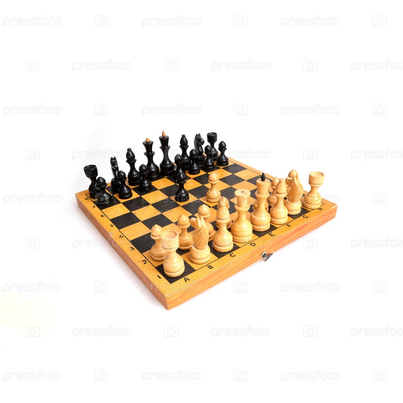 Шахматы на деревянной доске, изолированные на белом фоне