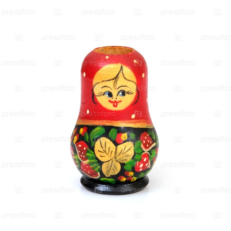 Традиционная русская деревянная игрушка «Матрешка» на белом фоне
