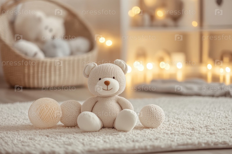 Уютный плюшевый мишка в теплой и уютной детской комнате