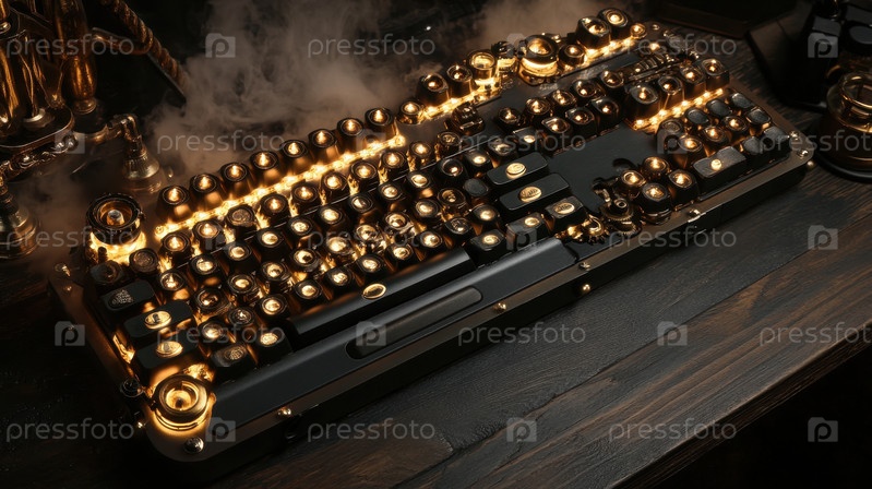 Механическая клавиатура в стиле стимпанк со светящимися клавишами