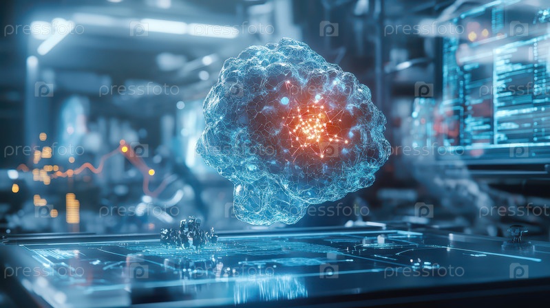 Цифровая голограмма мозга с визуализацией данных в высокотехнологичной лаборатории