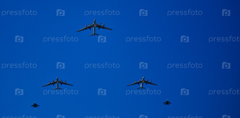Голубое небо с самолетами