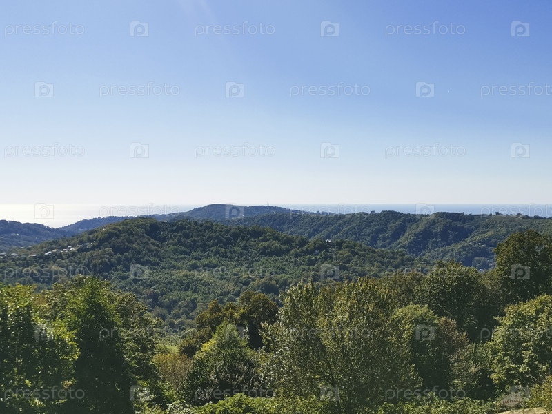 Россия, Краснодарский край, Сочи. Сентябрь 2020. вид с горы на море Экоферма Экзархо