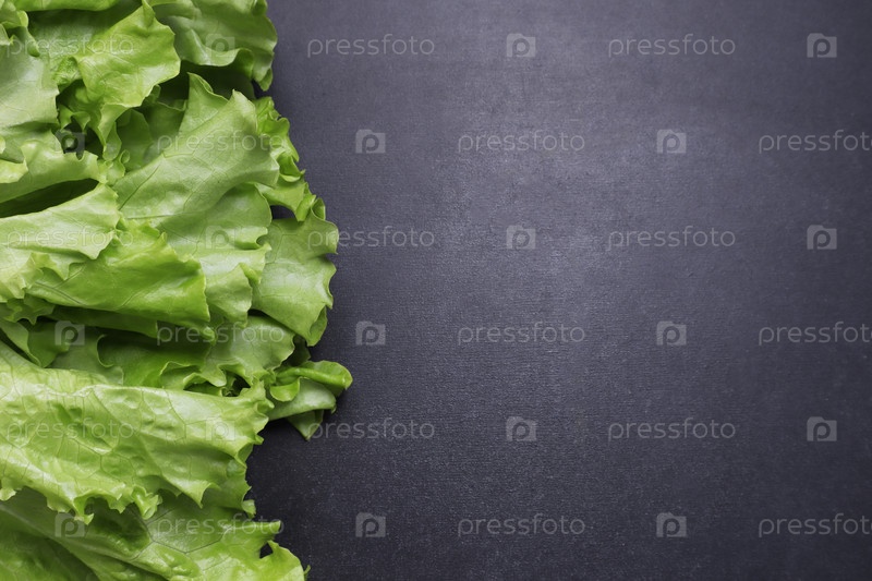 Листья зеленого салата. Овощи на черном текстурированном фоне