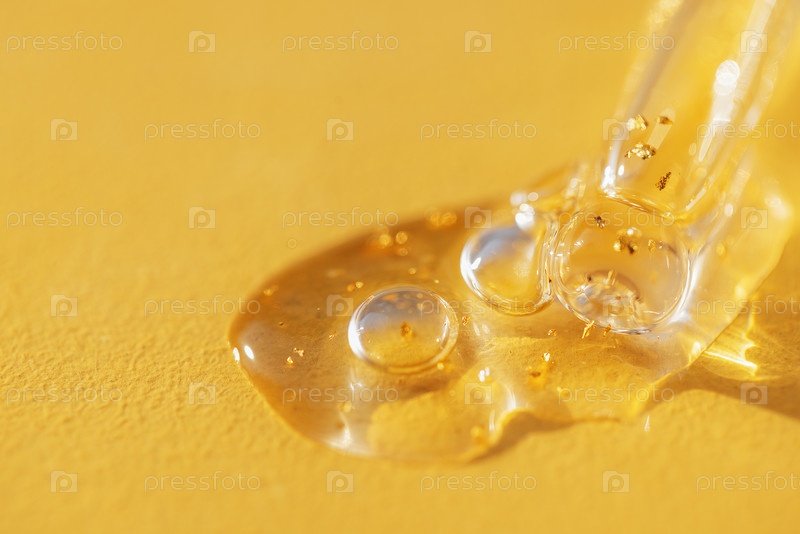 Косметические продукты. Витаминная эссенция с пипеткой на желтом фоне