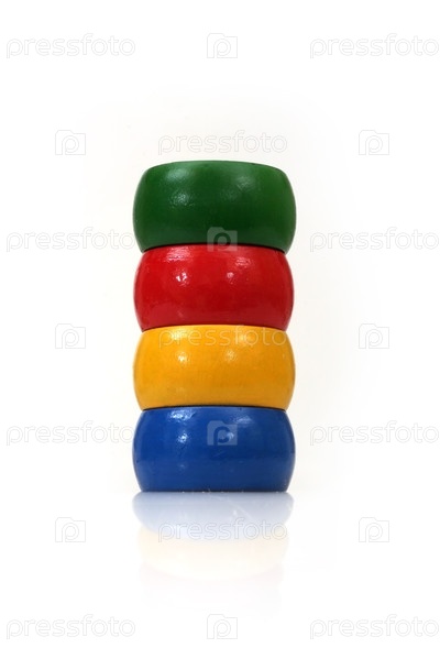 Детская игрушечная башня из колец, изолированная на белом фоне для создания графического дизайна
