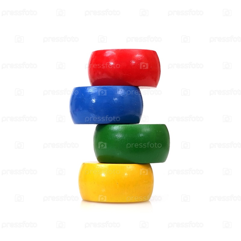 Детская игрушечная башня из колец, изолированная на белом фоне для создания графического дизайна