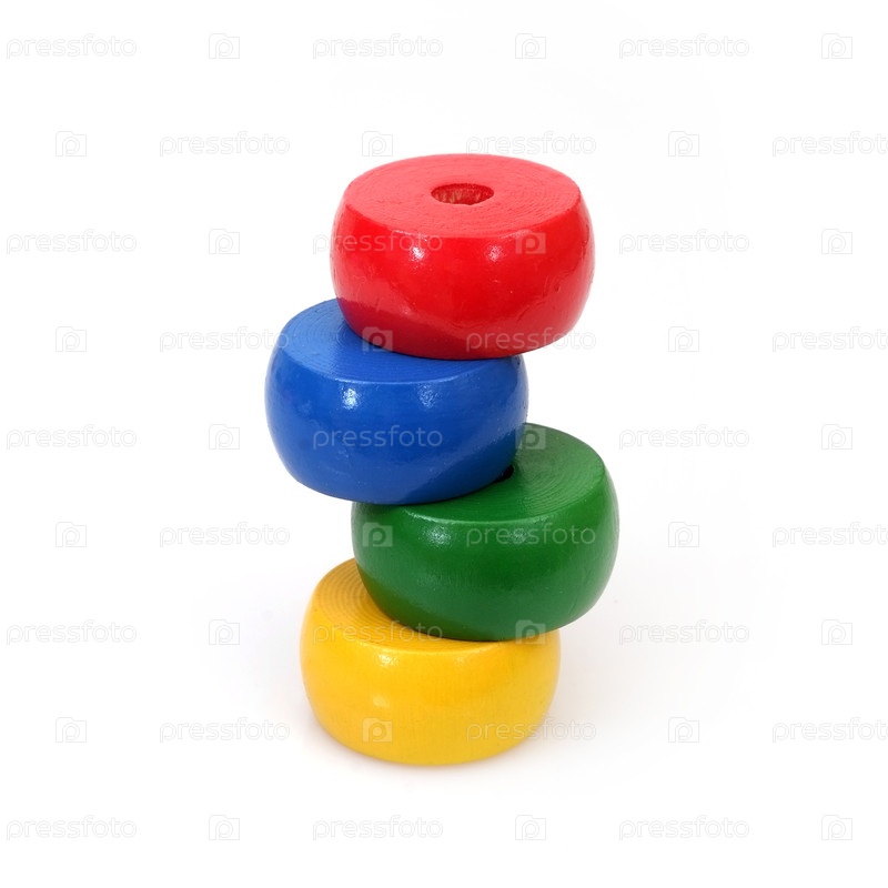 Детская игрушечная башня из колец, изолированная на белом фоне для создания графического дизайна
