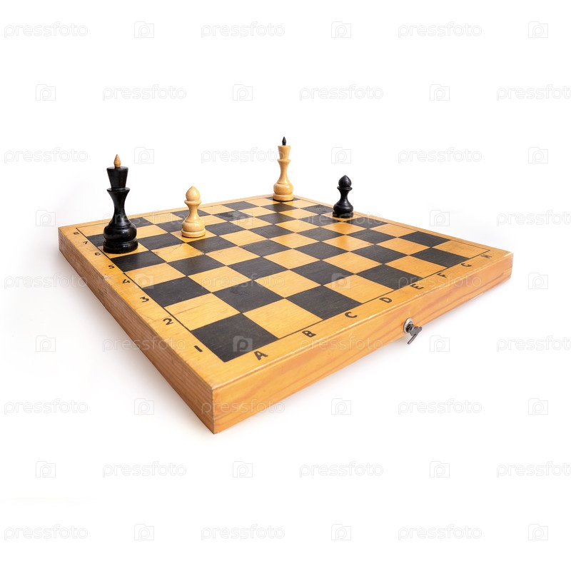 Шахматы на деревянной доске, изолированные на белом фоне. Этюд Рети