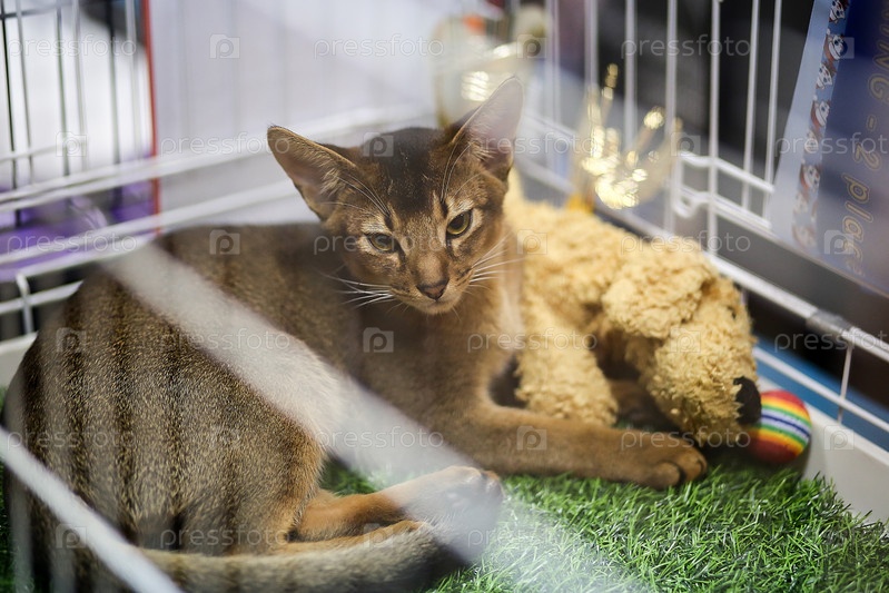 Краснодар, Россия — 15 декабря 2018 г. Кот сидит в клетке