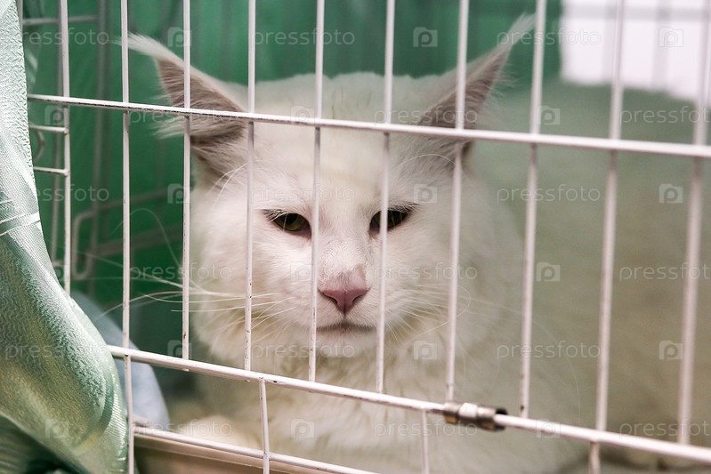 Краснодар, Россия — 15 декабря 2018 г. Кот сидит в клетке