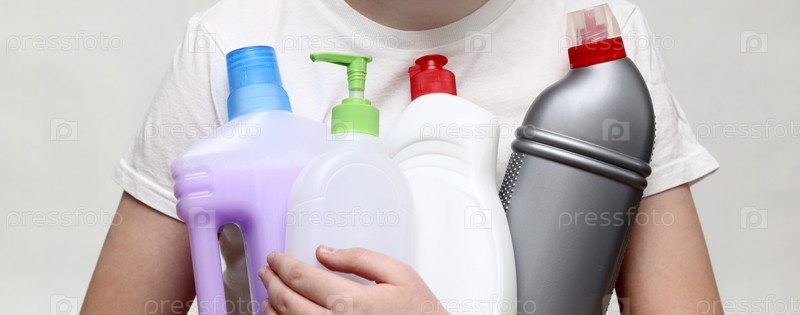 Бытовая химия в руках. Уборка дома. Концепция уборки