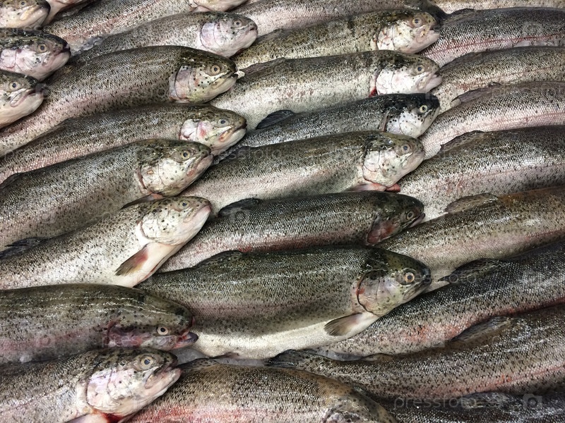 Свежая форель целиком на прилавке магазина