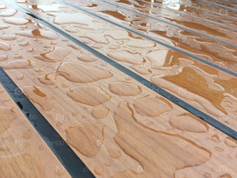 Вода на деревянной поверхности стола пол-дождя. Текстурный фон