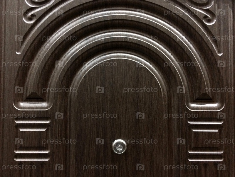 Дверной глазок на входной стальной двери крупным планом. Личная безопасность