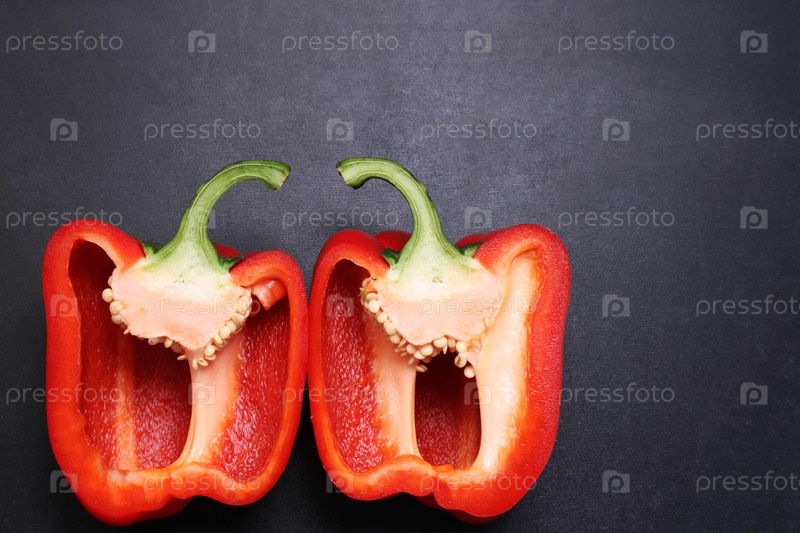 Красный болгарский перец паприка. Овощи на черном текстурированном фоне