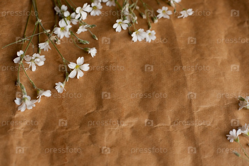 Текстура ретро-бумаги с белыми цветами