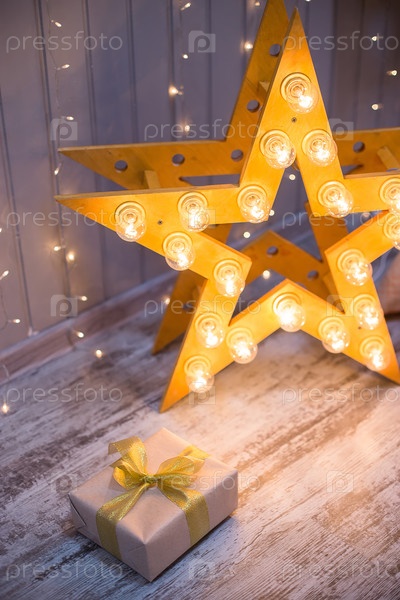 Подарок на деревянном фоне