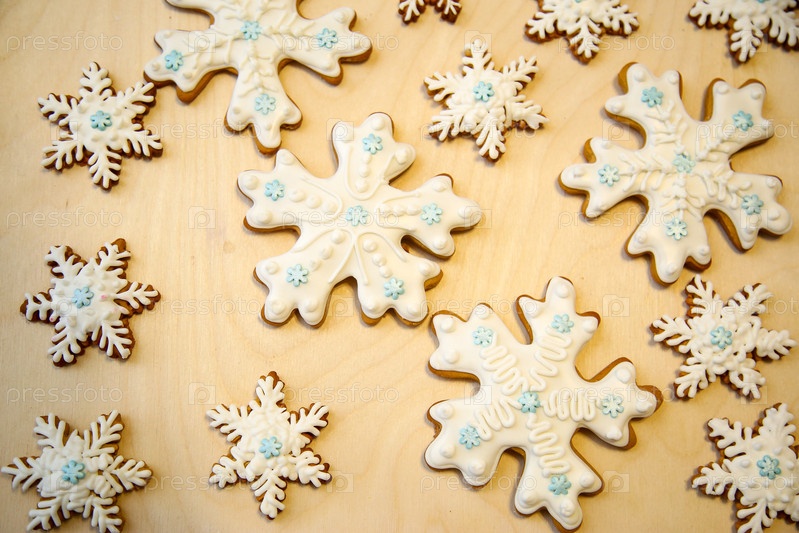 Печенье с глазурью. Рождественское печенье в форме снежинок