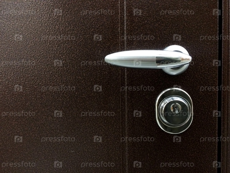 Входная металлическая дверь со стальной ручкой. Безопасность жилого дома