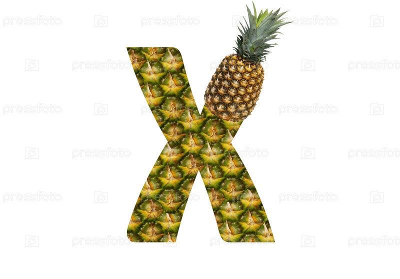 Буква алфавита X из ананаса на белом фоне. Тропический фрукт ананас диета летняя еда