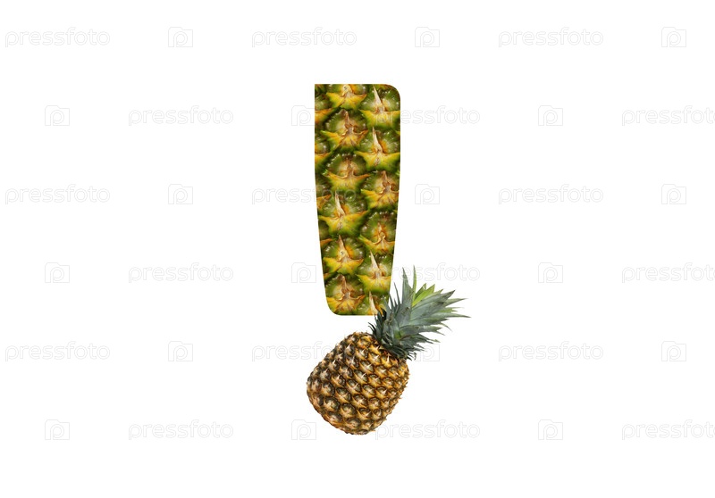 Восклицательный знак от ананаса на белом фоне. Тропический фрукт ананас диета летняя еда