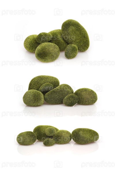 Мшистые камни, изолированные на белом фоне для дизайна в экологическом стиле