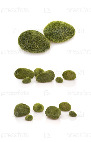 Мшистые камни, изолированные на белом фоне для дизайна в экологическом стиле