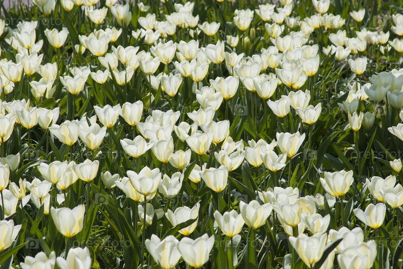 Цветущие белые тюльпаны. Естественный изолированный фон в ботаническом саду