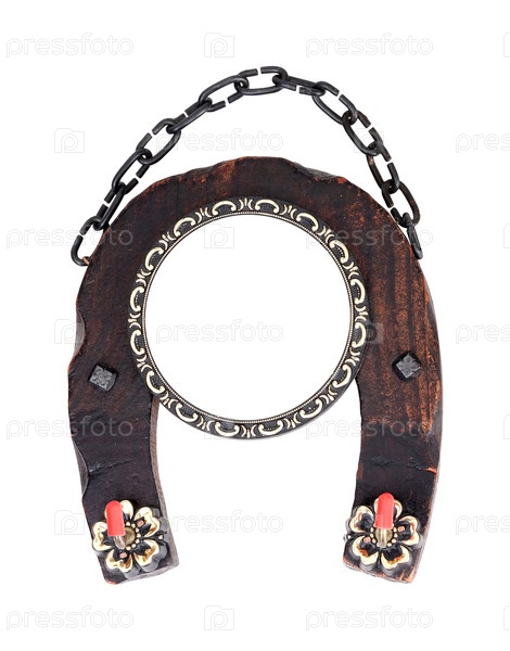Деревянная рама (подкова) для картин, зеркал или фото, изолированных на белом фоне. Элемент дизайна с обтравочным контуром