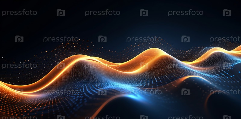 Абстрактные синие и желтые волны на темном фоне и огни боке