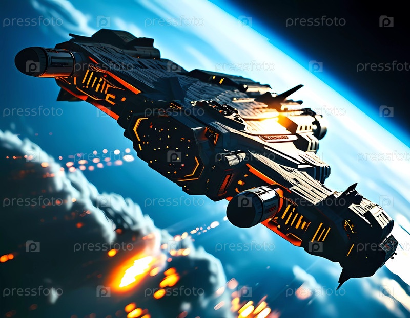 В глубинах космоса изящные космические корабли бороздят просторы красочных космических облаков и далеких галактик, освещая темные просторы светящимися следами и двигателями. Генеративный ИИ