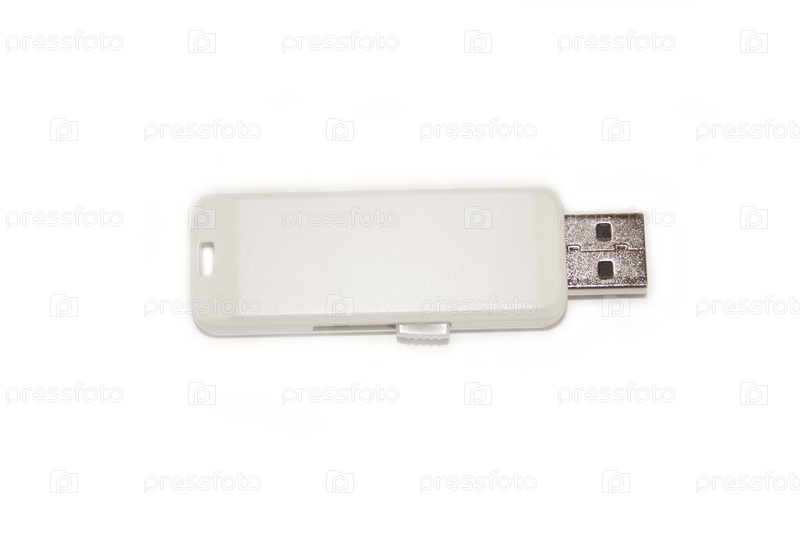 Белый флэш-накопитель на белом фоне