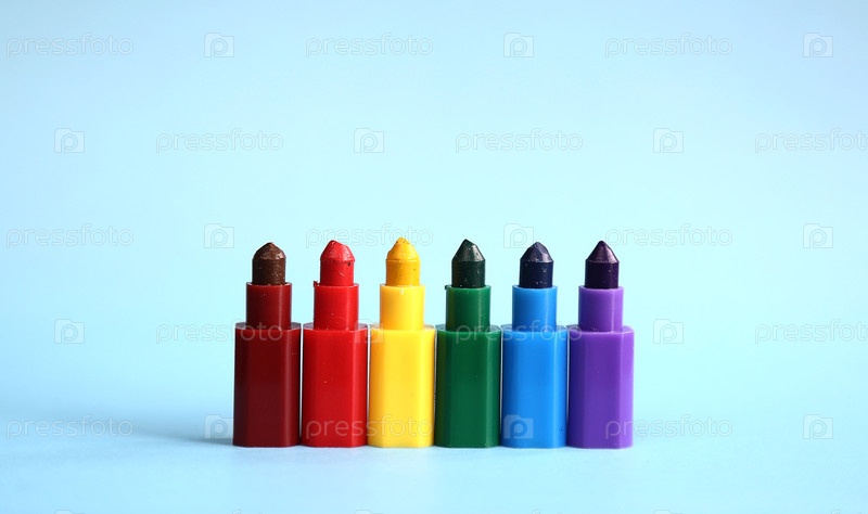 Разноцветные короткие восковые мелки. Детское творчество и хобби. Символ радуги