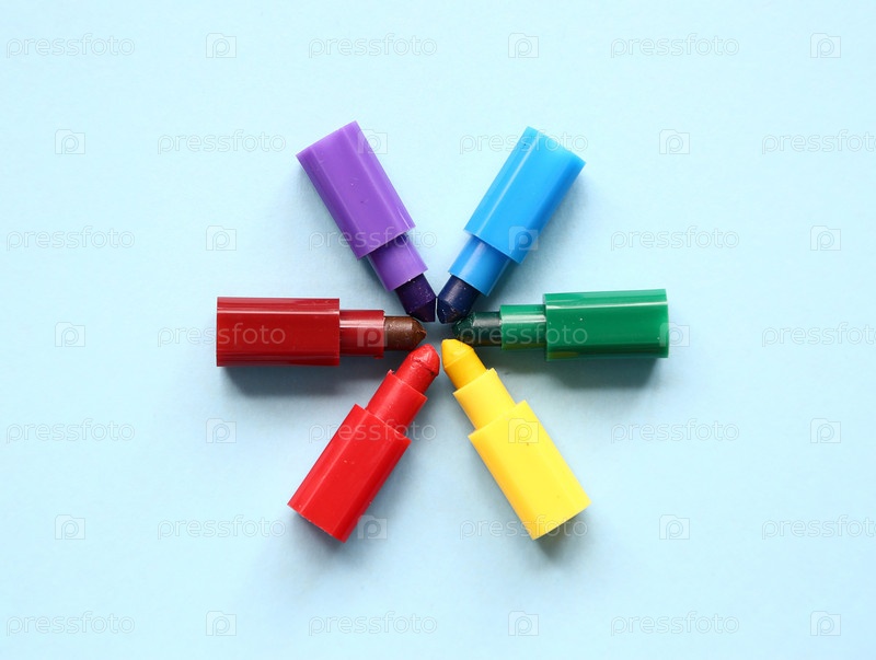 Разноцветные короткие восковые мелки. Детское творчество и хобби. Символ радуги