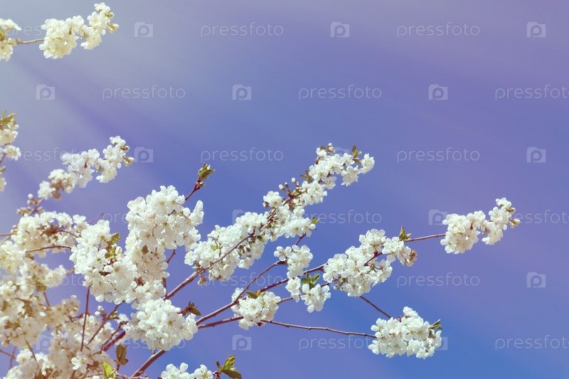 Цветущая ветка вишни на фоне голубого неба. Весеннее время