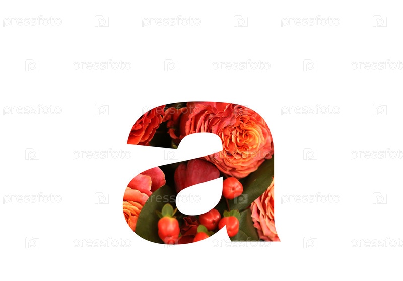 Цветочный шрифт буква А из настоящей красно-оранжевой розы для яркого дизайна. Стильный шрифт из цветов для концептуальных идей