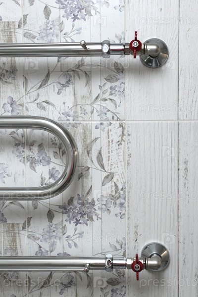 Полотенцесушитель трубчатый на стене в ванной. Тесная маленькая ванная комната