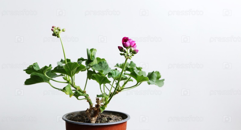 Комнатное растение герань с розовыми соцветиями в коричневом горшке