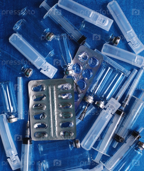 Пустой блистер, шприц, ампула. Отсутствие лекарств. Лекарства и лечение болезней