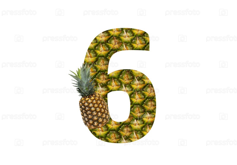 Номер 6 шесть из ананаса на белом фоне. Тропический фрукт ананас диета летняя еда
