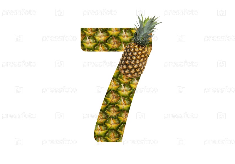 Номер 7 семь из ананаса на белом фоне. Тропический фрукт ананас диета летняя еда
