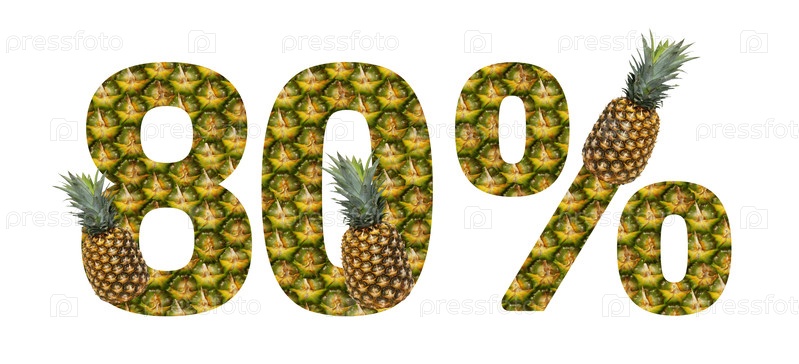 Восемьдесят процентов из ананаса на белом фоне. Тропический фрукт ананас диета летняя еда