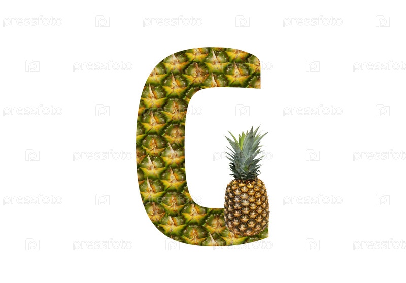 Буква алфавита G из ананаса на белом фоне. Тропический фрукт ананас диета летняя еда