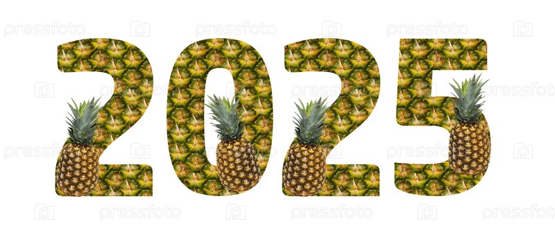 2025 из ананаса на белом фоне. Тропический фрукт ананас диета летняя еда