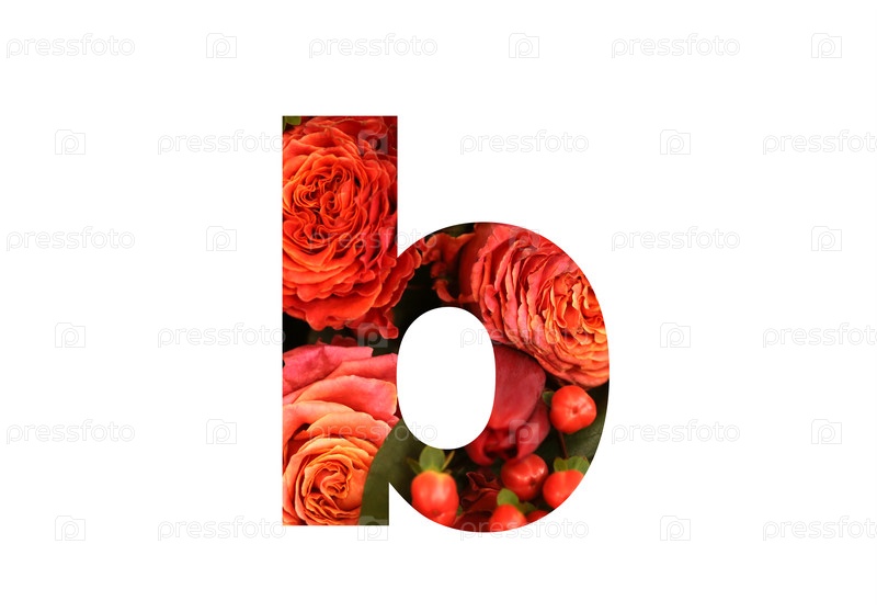 Цветочный шрифт буква B из настоящей красно-оранжевой розы для яркого дизайна. Стильный шрифт из цветов для концептуальных идей