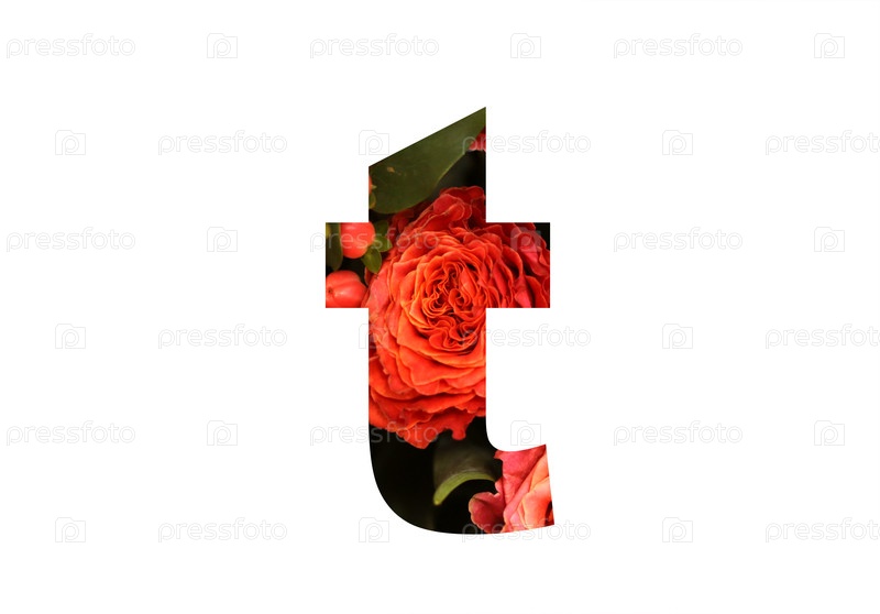 Цветочный шрифт буква Т из настоящей красно-оранжевой розы для яркого дизайна. Стильный шрифт из цветов для концептуальных идей