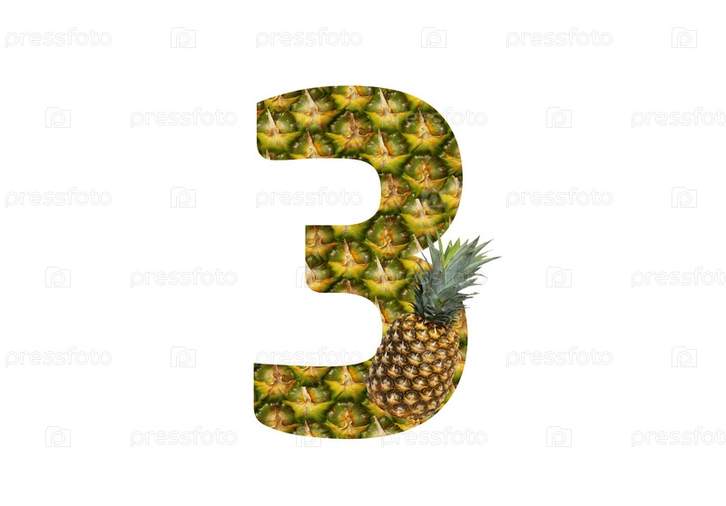 Номер 3 три из ананаса на белом фоне. Тропический фрукт ананас диета летняя еда