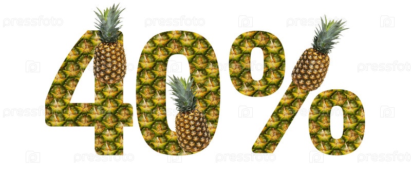 Сорок процентов из ананаса на белом фоне. Тропический фрукт ананас диета летняя еда
