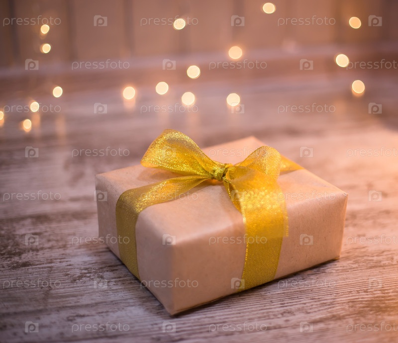 Подарок на деревянном фоне
